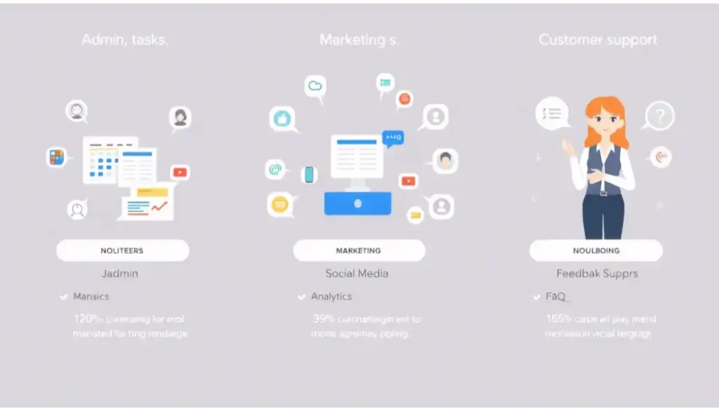 Les tâches répétitives représentent souvent jusqu’à 40% du temps de travail des équipes. Les assistants virtuels, particulièrement ceux basés sur l’IA, peuvent automatiser :